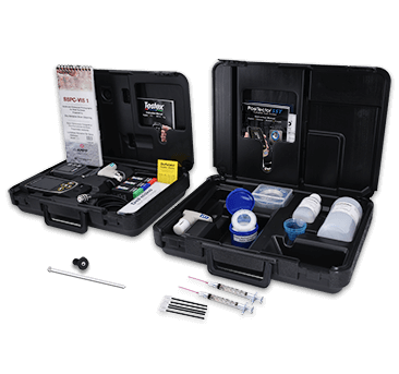 Los kits de micrómetros Testex incluyen todo lo necesario para medir el perfil de la superficie con cinta de réplica